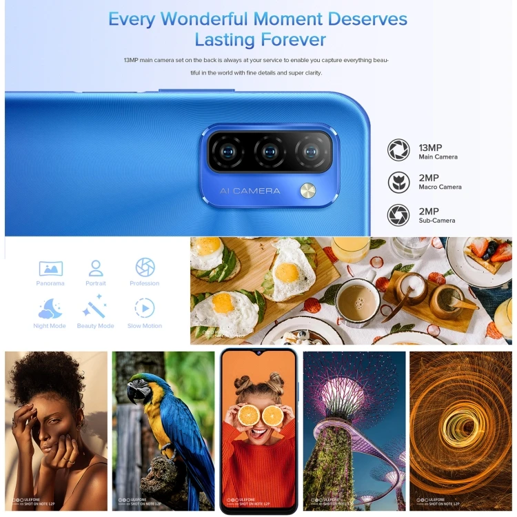 NEW Ulefone Note 12P Android 11Smartphone, 6.82 inch 4GB+64GB Triple Back Cameras 7700mAh Face ID & Fingerprint Unlock Cellphone